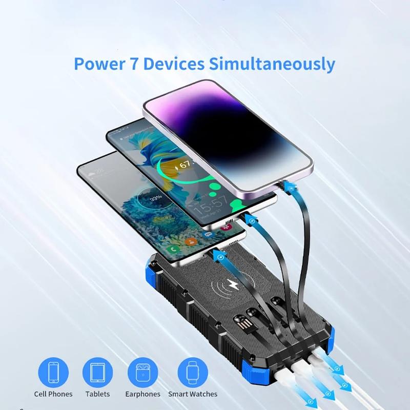 1. Con protección de seguridad inteligente ,Con función de carga solar, lo mejor para acampar