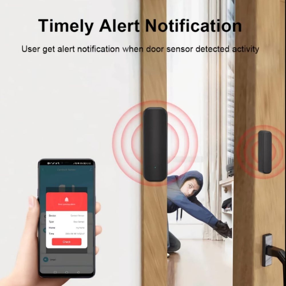 Compatible con la plataforma Smart Life de Tuya, podrás gestionar la seguridad de tu espacio de manera eficiente. El sensor emite una alarma sonora al detectar un acceso no autorizado, brindando una capa adicional de seguridad para ti y tu familia. Además, su uso es sencillo y accesible, ideal para quienes buscan una solución práctica y eficaz para la protección del hogar.