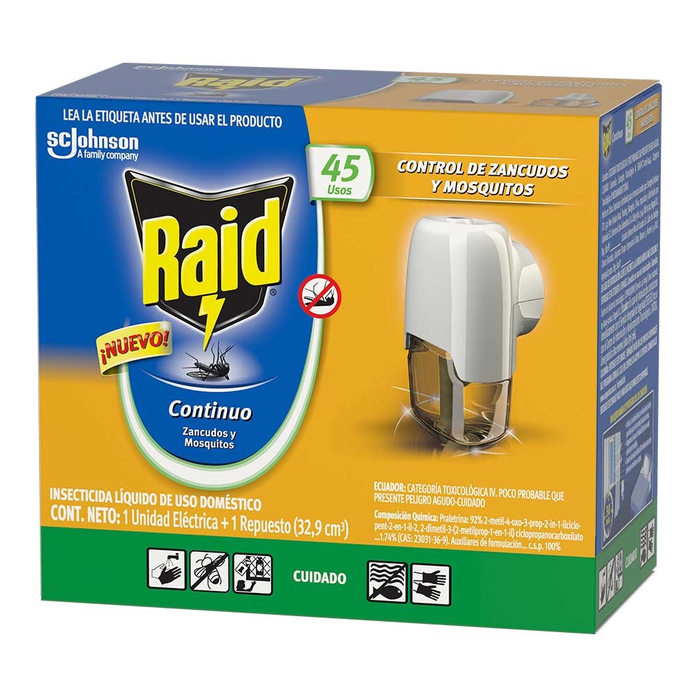 Insecticida líquido 1 unidad electrica + 1 repuesto 45 usos Raid zancudos y mosquitos