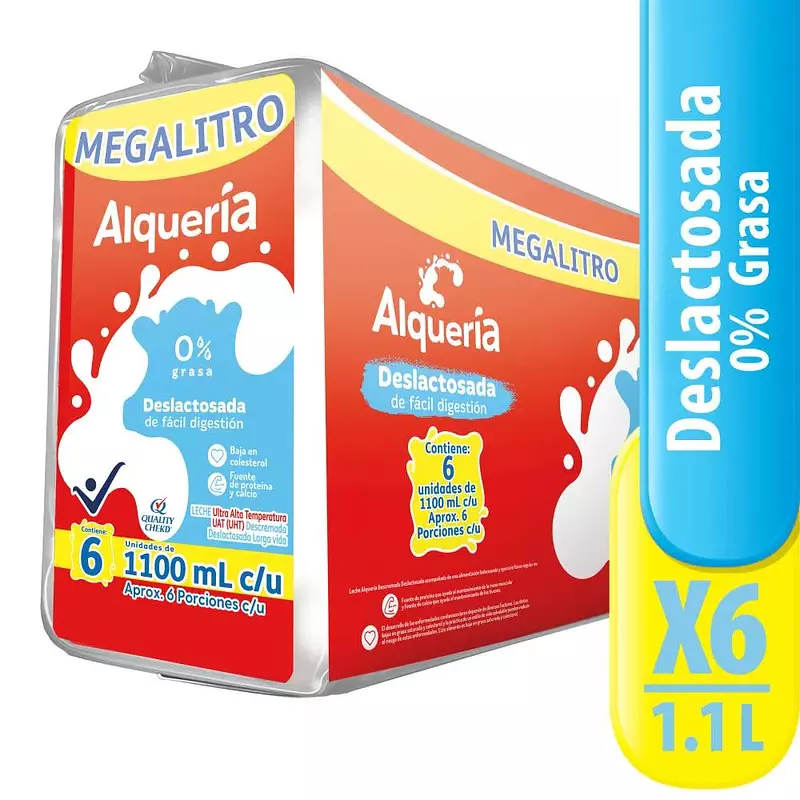 Leche Alqueria Deslactosada 0 Grasa Sixpack