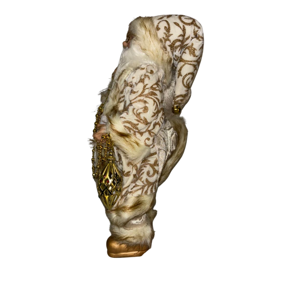 El Adorno de Papá Noel Blanco con Dorado y Regalos es una pieza decorativa que combina la magia de la Navidad con un toque de elegancia y distinción. Con su traje blanco decorado en tonos dorados y acompañado de regalos, este Santa Claus es perfecto para colocar en el árbol, repisas, mesas, entradas o como centro de mesa navideño. Elaborado con materiales de calidad y acabados brillantes, transmite lujo y calidez, convirtiéndose en el complemento ideal para quienes buscan adornos navideños elegantes, decoración festiva en dorado y figuras de Papá Noel exclusivas.