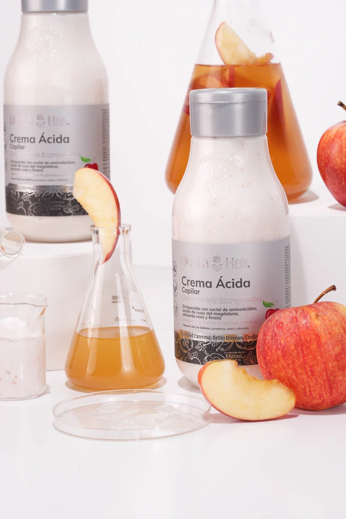 Crema Ácida Capilar formulada con pH balanceado, diseñada para restaurar y sellar la cutícula del cabello después de procesos químicos y lavados frecuentes. Su avanzada acción acondicionadora profunda ayuda a reequilibrar la fibra capilar, cerrando las escamas del cabello para retener la hidratación y los nutrientes esenciales.