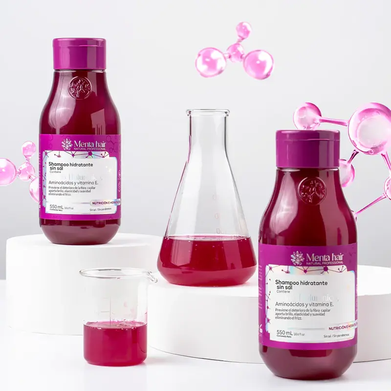 Shampoo hidratante sin sal, formulado con ácido hialurónico, aminoácidos y vitamina E, especialmente desarrollado para cabellos con procesos posquímicos. Ayuda a prevenir el deterioro de la fibra capilar, aporta brillo, elasticidad y suavidad, controla el frizz y mejora la manejabilidad.