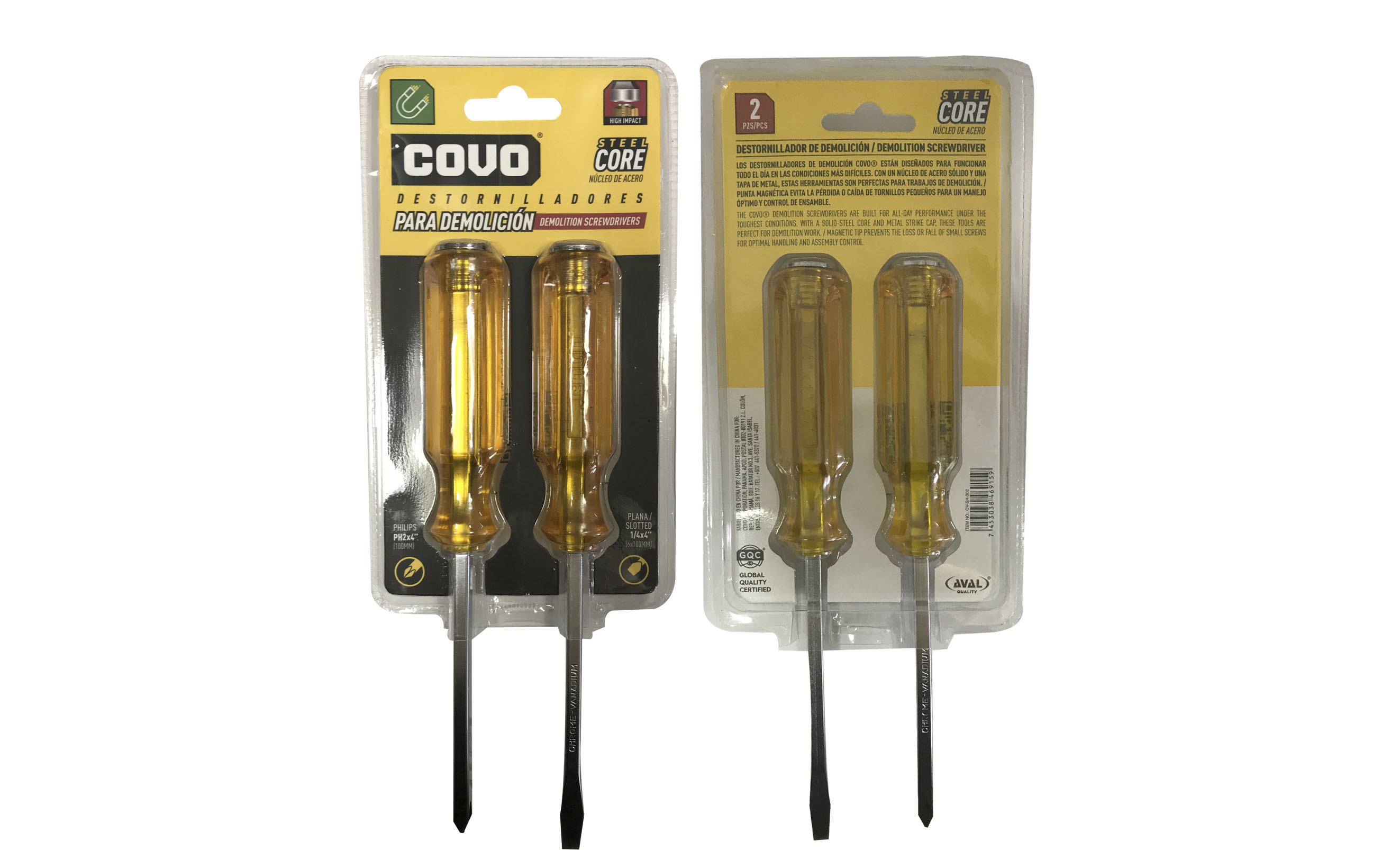 JUEGO X2 DESTORNILLADORES 4¨ DEMOLICIÓN MANGO ACETATO BLISTER PZA