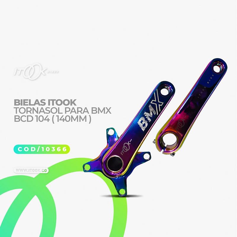 Bielas BMX ITOOK tornasol BCD 104 /140mm. ¡Estilo y rendimiento para tu bici! Envíos a Bogotá y toda Colombia.