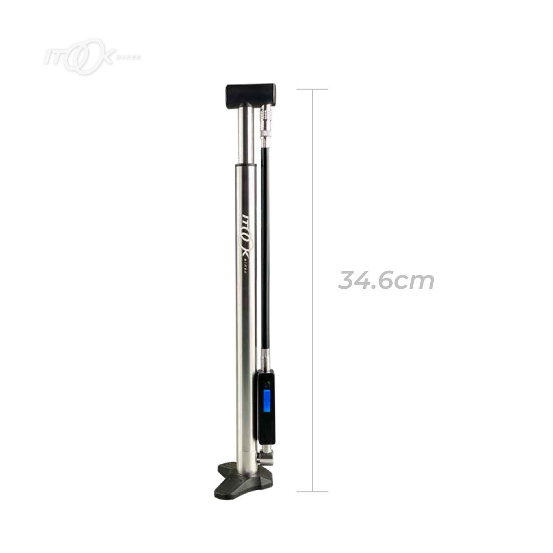Bomba de piso digital de aluminio CNC, 150 PSI. Presión precisa para tus ruedas. Envío rápido y seguro a Bogotá y toda Colombia.