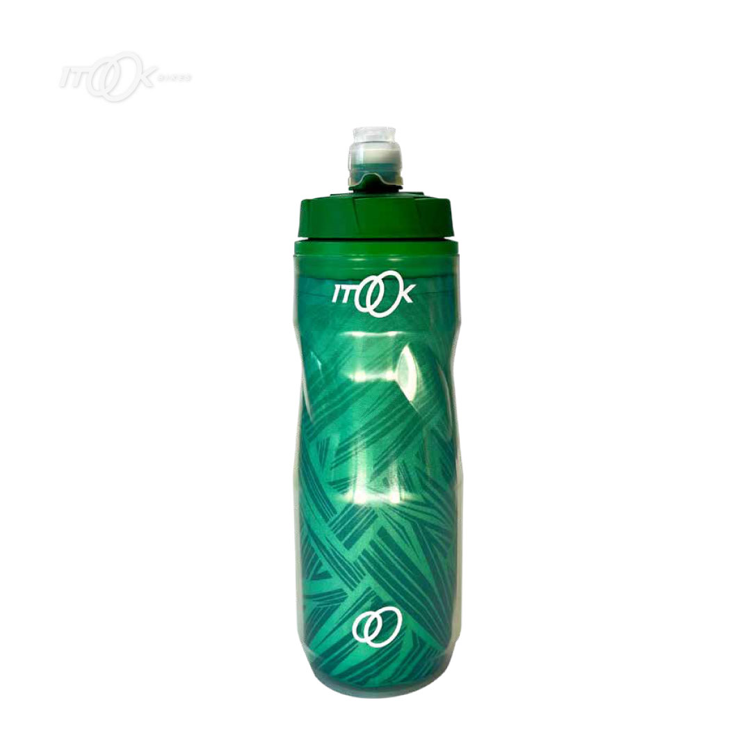 Mantén tus bebidas frías con la caramañola térmica ITOOK verde de 21 onzas. Ideal para ciclistas. Envíos a Bogotá y toda Colombia.