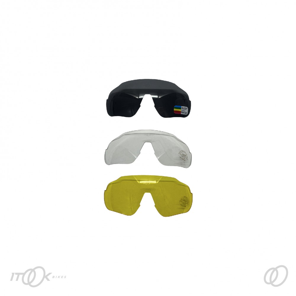 Gafas Six Biachi para niños con 4 lentes (negro, transparente, amarillo). Protección y estilo para ciclistas jóvenes.