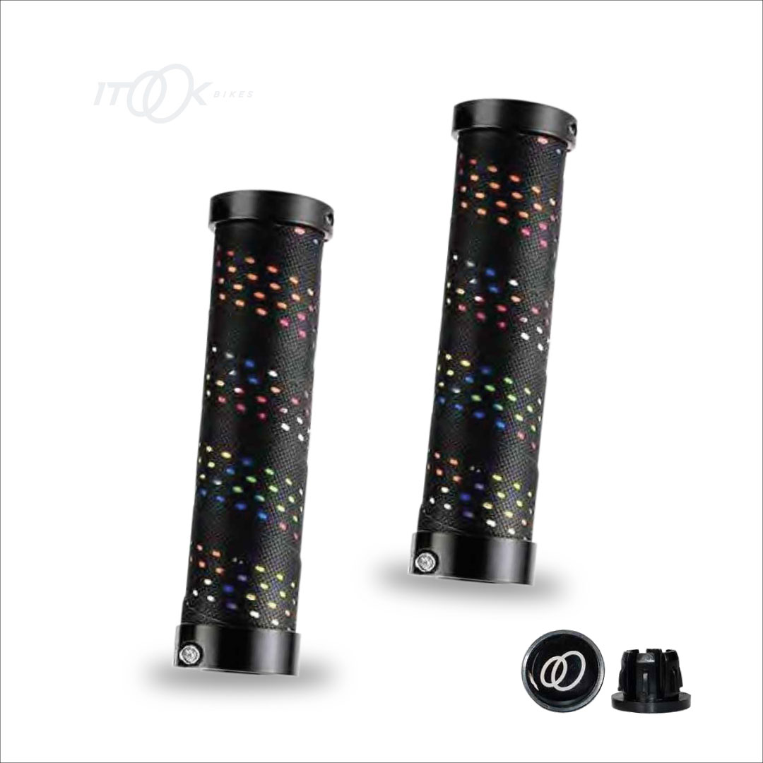 Grips MTB PRO y cinta de manillar de colores para tu bicicleta. Mejora el agarre y el estilo. Color full