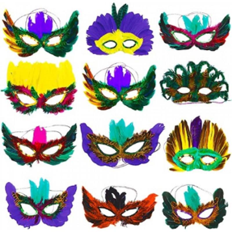 Set de antifaces con plumas.