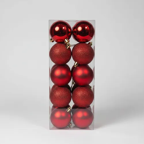Set de bolas navideñas de 6 cm, 20 unidades en colores surtidos, perfectas para árboles medianos.