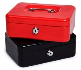Caja metálica menor de 14.5 cm, segura y práctica para almacenamiento.
