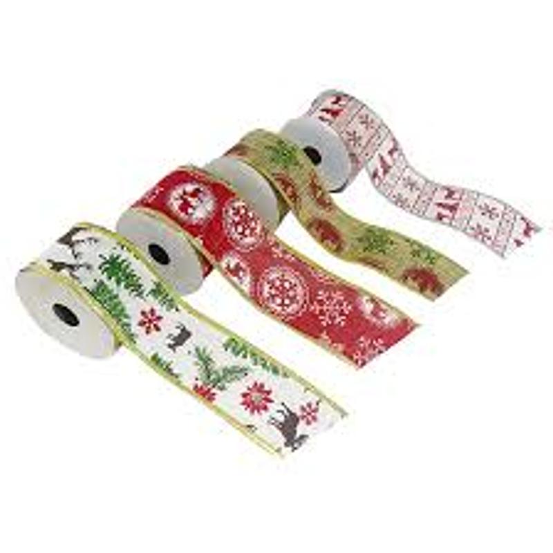 Cinta decorativa navideña de 10 cm con diseños variados para envolver.