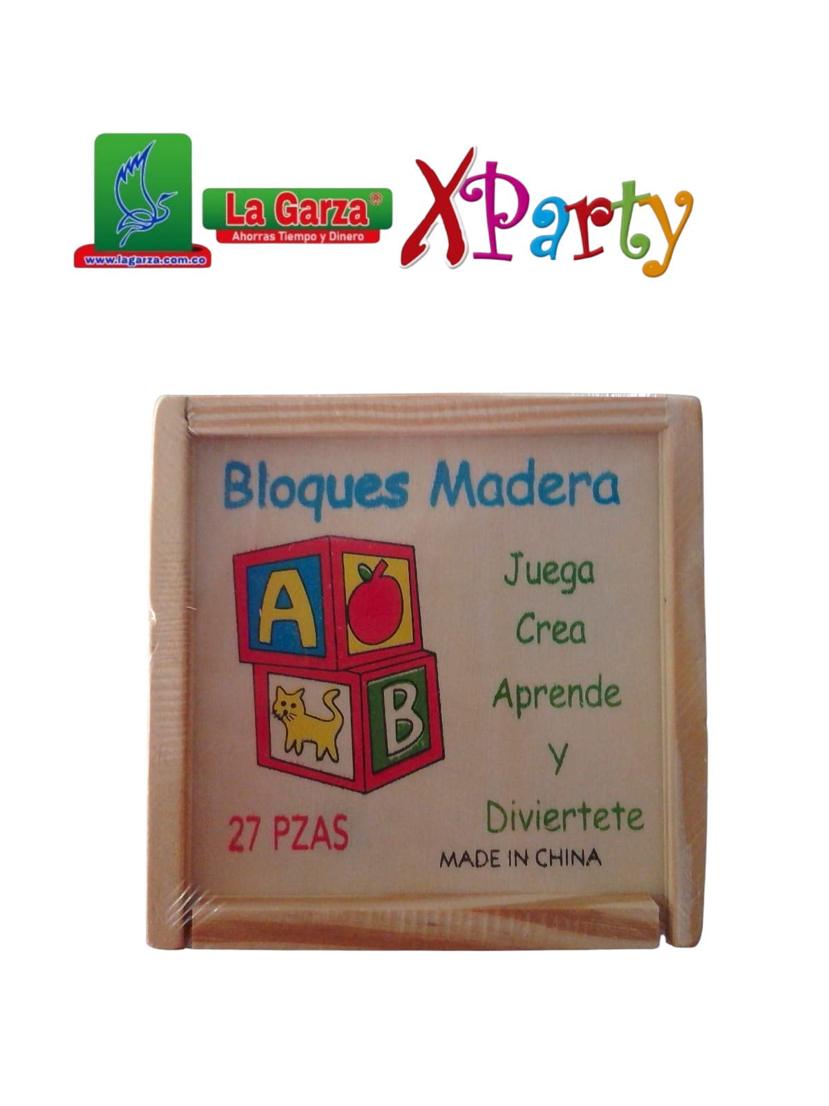 Caja de madera con cubos educativos ABC para aprender letras