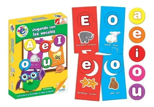 Juego educativo con ilustraciones para aprender las vocales de forma divertida.