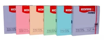 Post It x100 75x75 Kores pastel, notas adhesivas, en colores pastel, ideal para organización.