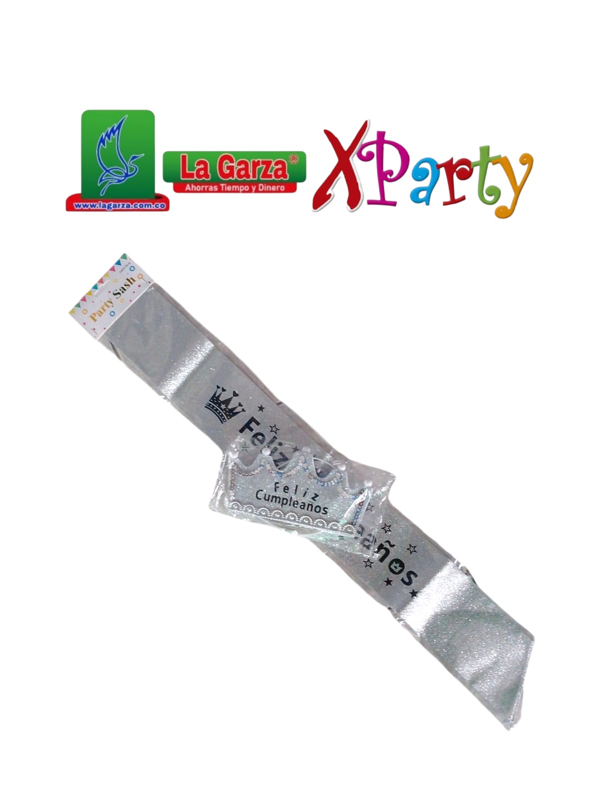 Set decorativo para cumpleaños que incluye corona y cinta, perfecto para celebraciones infantiles.