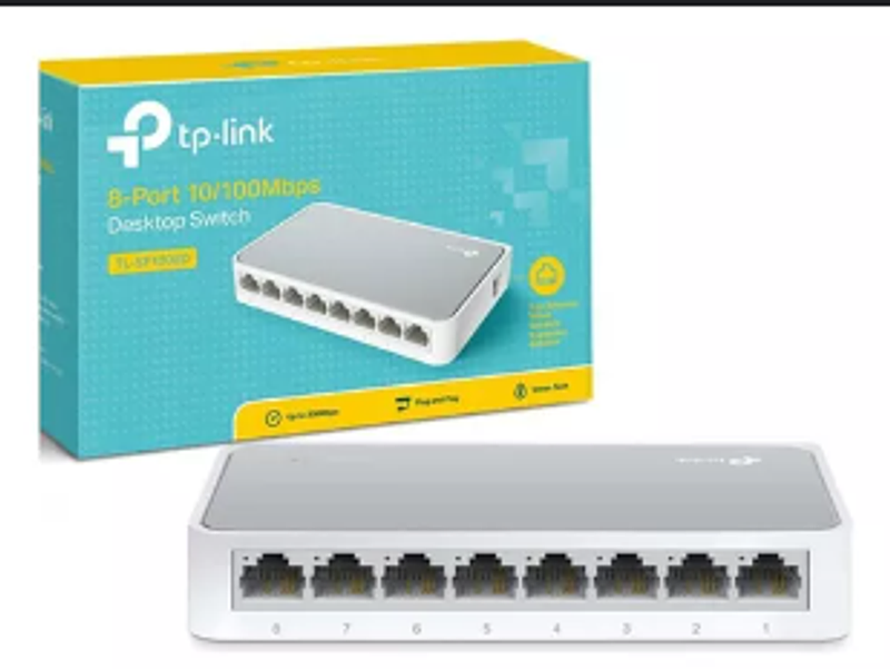 Switch de 8 puertos 10/100 Mbps. Conexiones rápidas y eficientes para tu red local. Ideal para oficinas y entornos de trabajo.