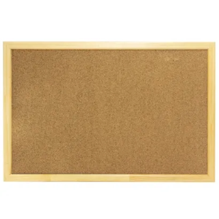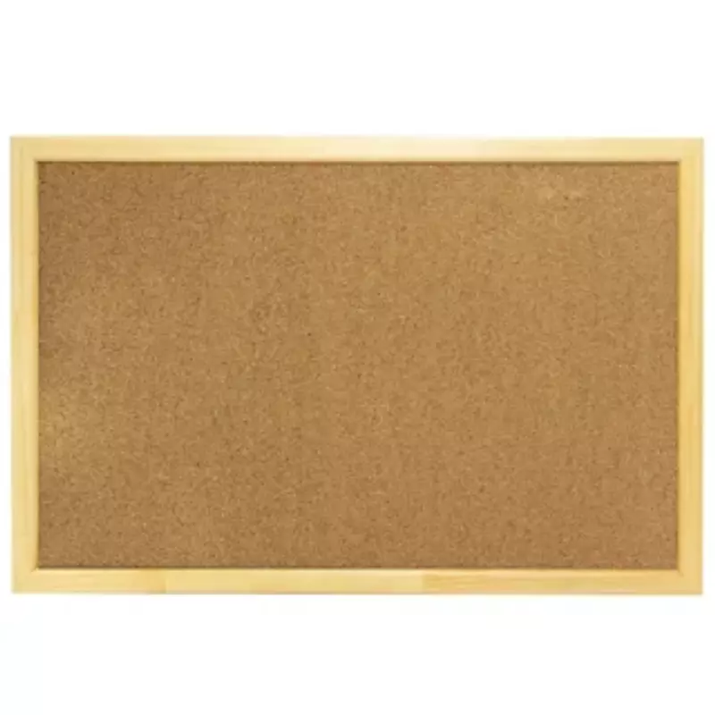 Tablero de corcho con marco de madera para fijar notas.