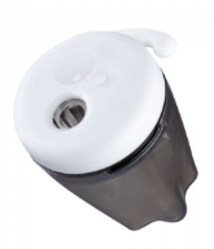 Tajalápiz doble depósito fantasma Kores, diseño único, doble entrada, fácil de vaciar.