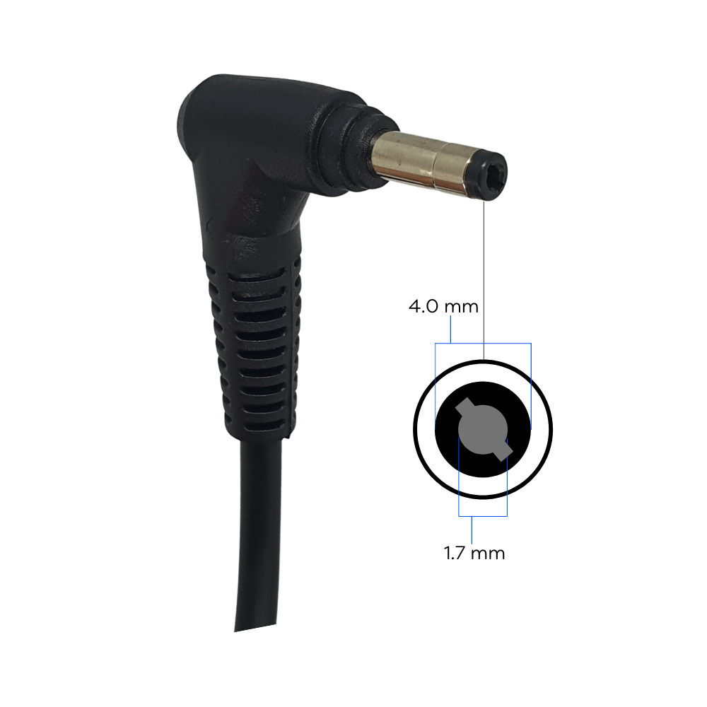 Potencia de Salida / Watts: 45W Diámetro de conector: 4.0*1.7mm Pin o Aguja central Cable de poder plano tipo trebol ultrarresistente de 1.5 mts Cargador genérico: homologado Calidad premium para Samsung Protecciones: OVP y SCP (contra sobre voltaje y cortocircuito) Voltaje de entrada: 100V-240V