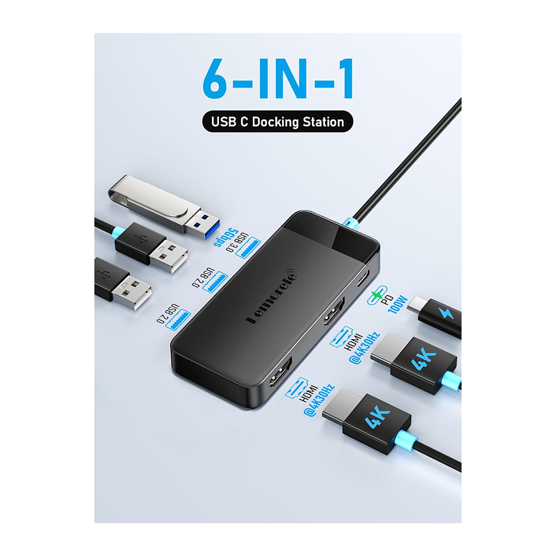 Integra salida HDMI en alta definición, puertos USB para periféricos, y funciones adicionales que mejoran la productividad y la conectividad. Su diseño compacto y portátil es ideal para uso en oficina, estudio o viajes. Además, cuenta con sistema Plug & Play, sin necesidad de instalar controladores.