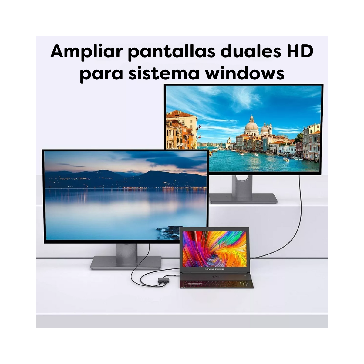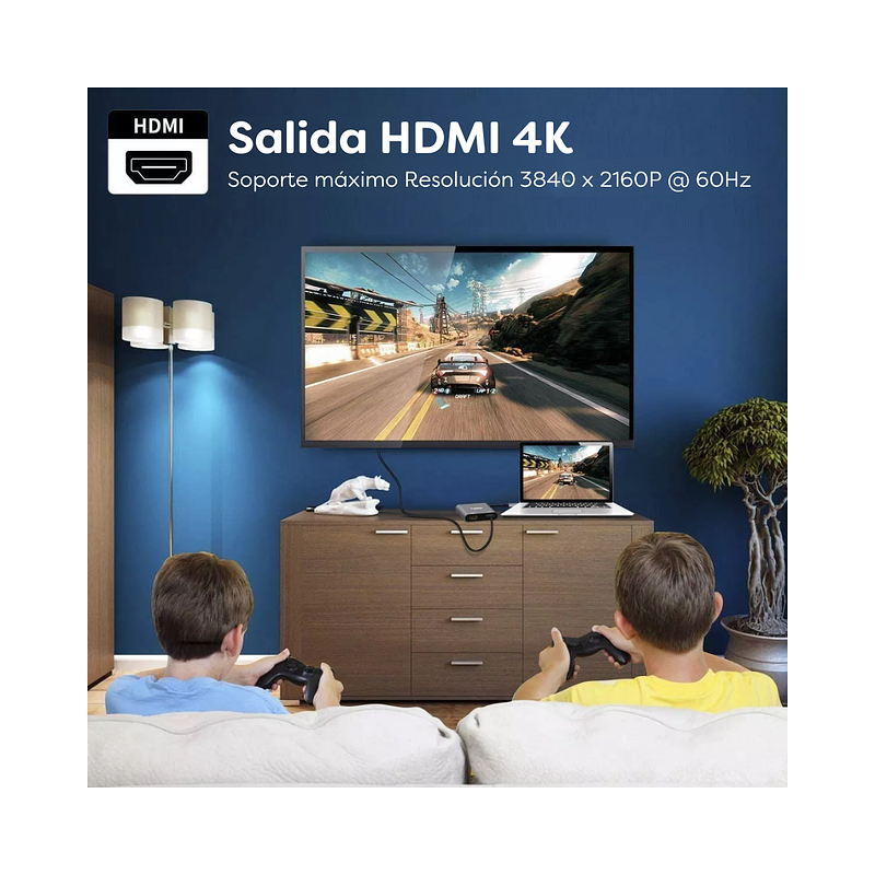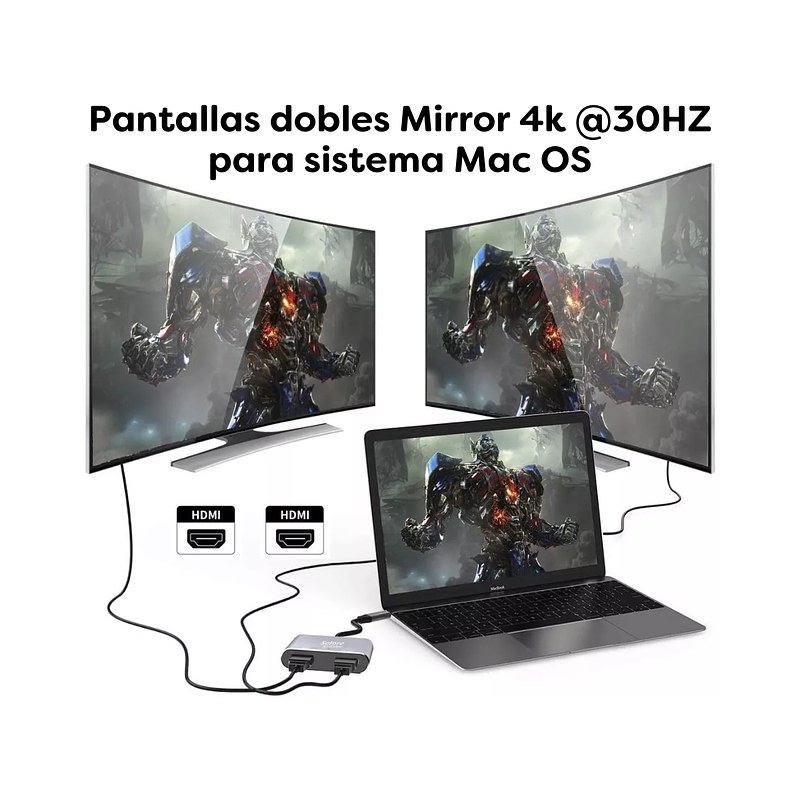 Se utilizan los puertos 2HDMI de este adaptador de monitor 2 hdmi, resolución máxima de hasta 4K @ 30Hz. Admite modo extendido y modo espejo.