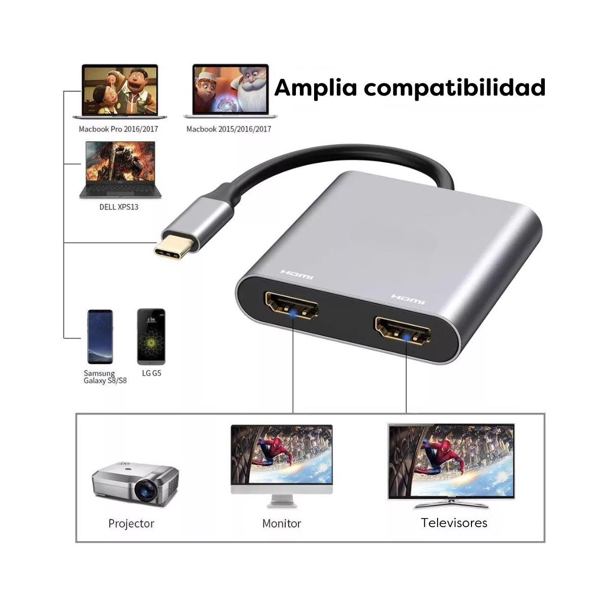 Configuración fácil: este adaptador de monitores hdmi múltiples usb c simplemente enchufar y usar, sin necesidad de instalar ningún controlador / software.