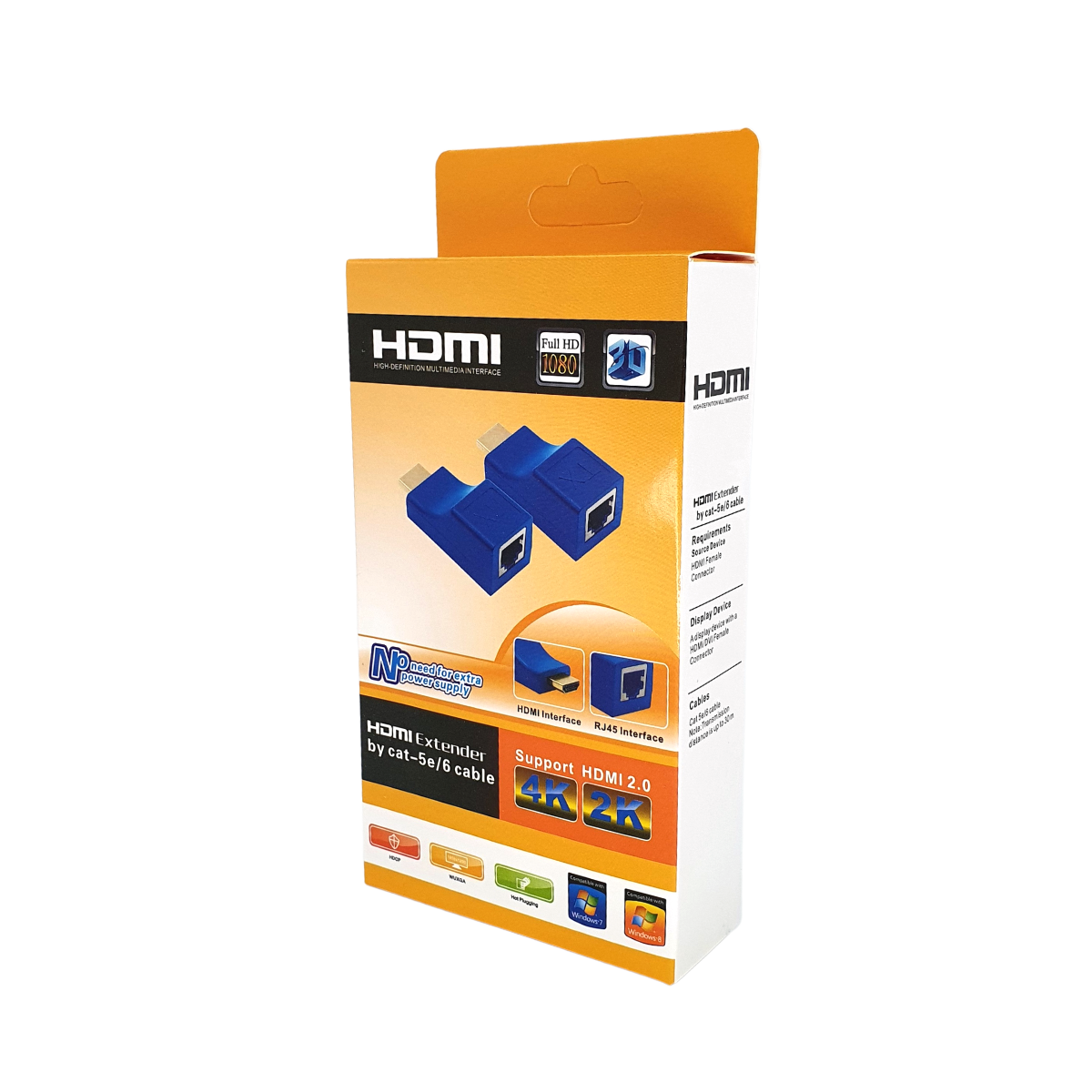 Extender HDMI con cable de red CAT-5E o CAT-6 que permite transportar una señal HDMI hasta un máximo de 30 metros conservando una calidad de hasta 1080p.