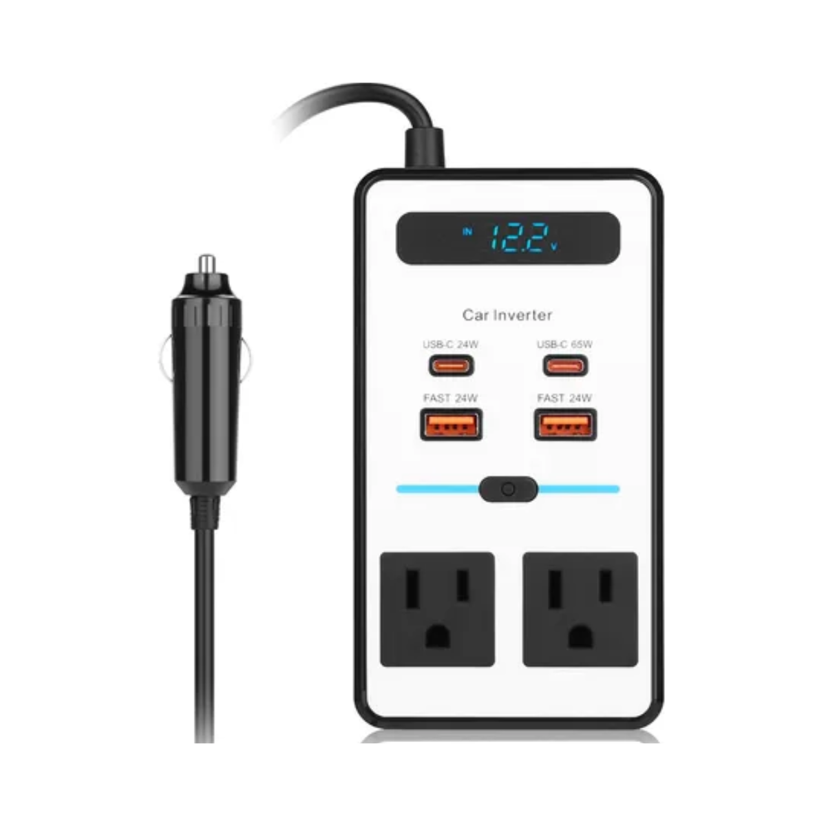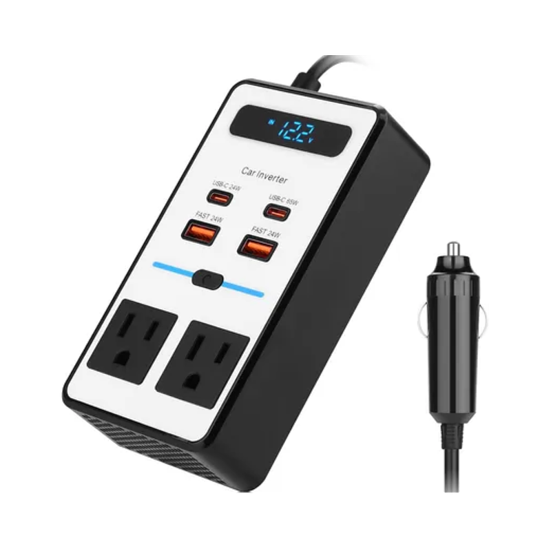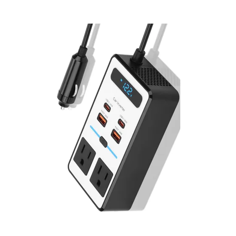 Convierte energía en tu auto con el Inversor 200W PC200XS, incluye USB-A y USB-C de carga rápida para múltiples dispositivos.