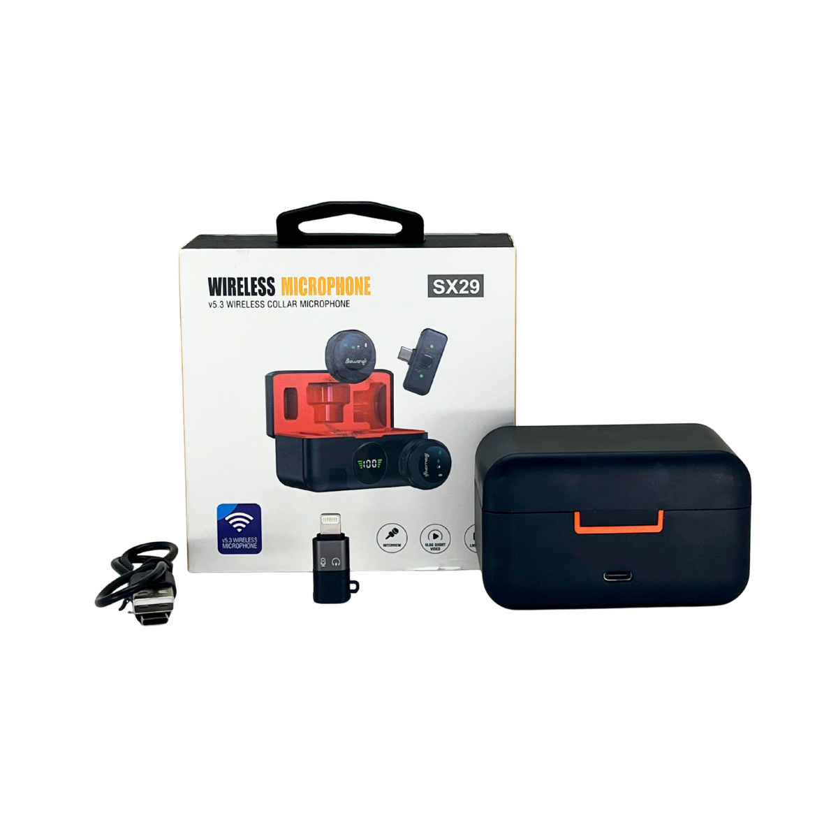 Graba con calidad profesional desde tu celular. Incluye 2 micrófonos inalámbricos, estuche de carga con pantalla LED y adaptadores para dispositivos iOS y Android. Ideal para entrevistas, vlogs, TikTok, YouTube y más. Fácil conexión automática, cancelación de ruido y sonido nítido. ¡Sin cables, sin complicaciones!