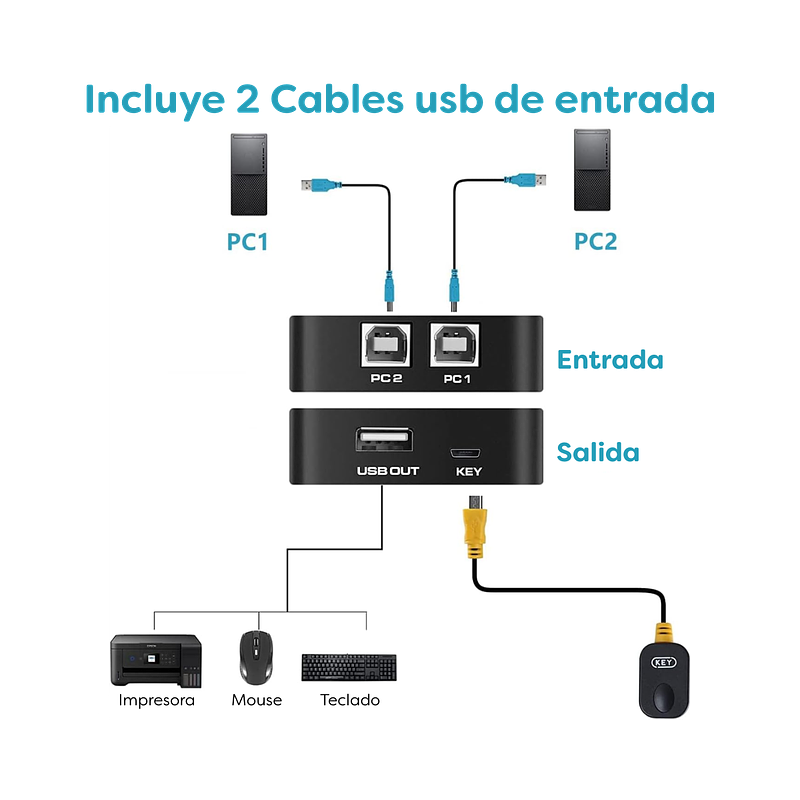 Optimiza tu espacio y ahorra tiempo con el Switch USB Multipuerto para impresora. Conecta 2 PCs a una misma impresora sin necesidad de configuraciones complicadas.