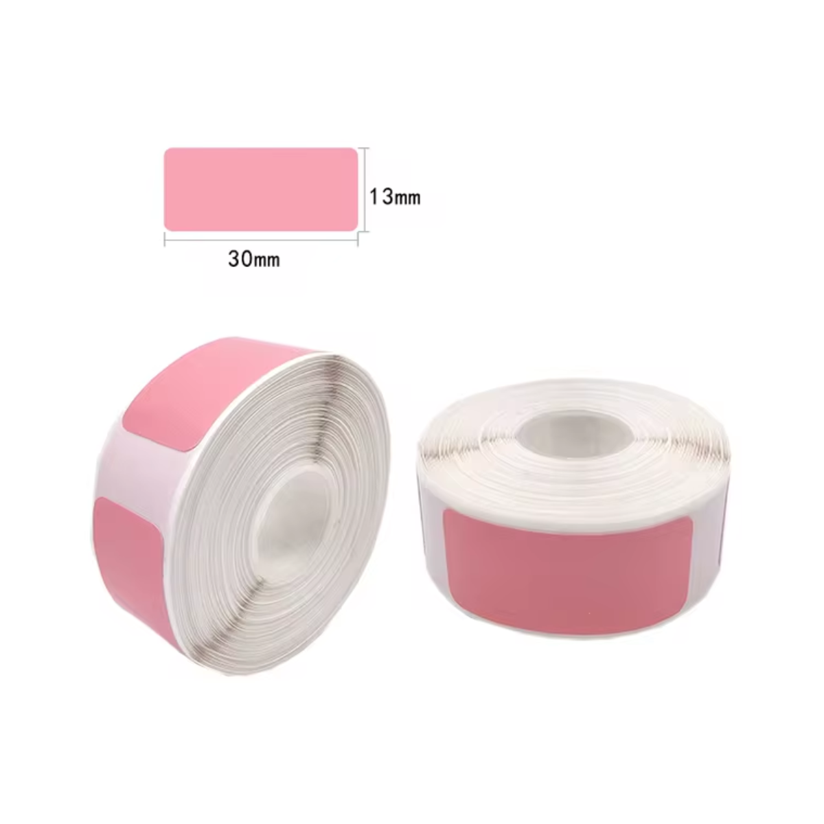 Etiqueta adhesiva rectangular de 12×40 mm en un atractivo color rosado, ideal para organizar, marcar productos, etiquetar objetos personales, oficinas o uso escolar.