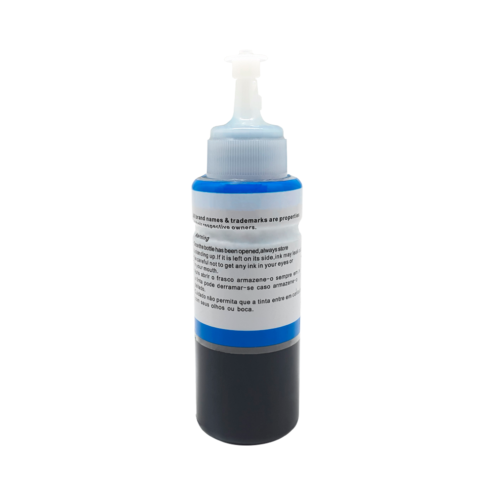 Botella de tinta genérica Color cyan en presentación 100 ml usada en impresoras de referencia l3108 l3110 l3111 l3118 l3119 l3150 l3158