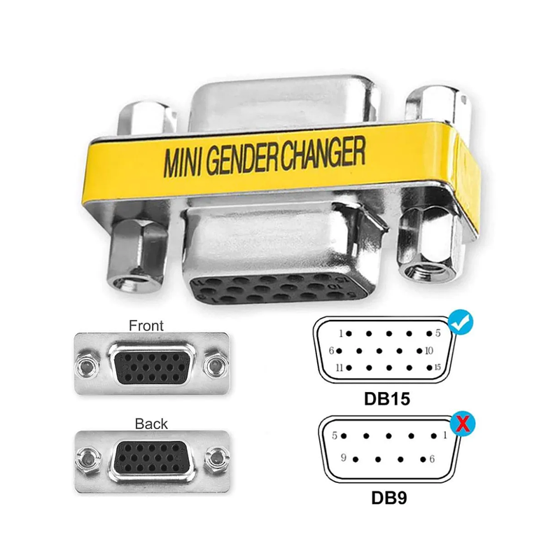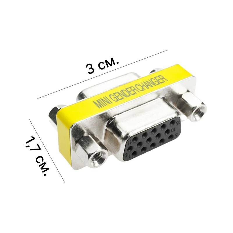 El artículo toma un extremo macho (PINES) y lo convierte en un extremo hembra (agujeros).Se puede utilizar con monitores, proyectores, divisores VGA, KVM y mucho más.Especificaciones:Tamaño: 31x18x13mmColor: plata