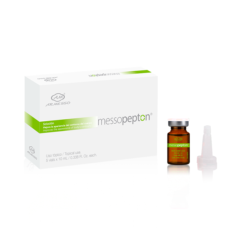 Messopepton® es una solución corporal formulada para complementar protocolos estéticos enfocados en mejorar la apariencia del contorno corporal y la calidad de la piel. Su uso está orientado a tratamientos profesionales en cabina.