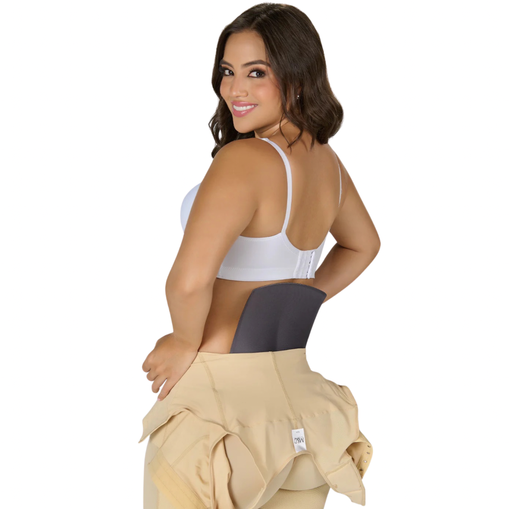 Su diseño se adapta a la figura, evitando así molestias e inflamación. Es suave y liviano, lo que permite moverse de manera cómoda; a su vez evita el contacto de la faja con la piel y posibles pliegues ocasionados por el momento.