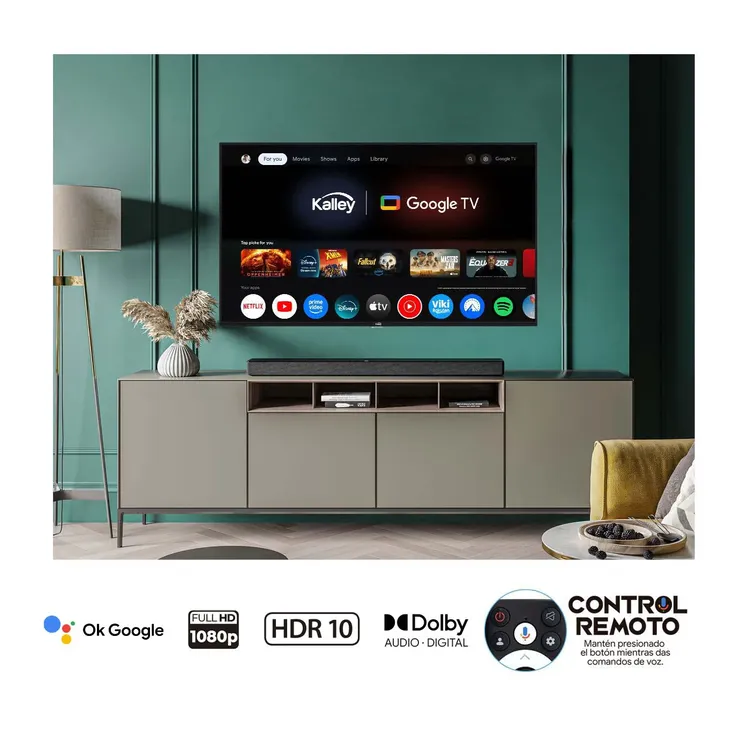 Kalley te ofrece tecnología, entretenimiento y calidad a un precio increíble con su Google TV de 43", que incluye pantalla Full HD con HDR10 para colores más vivos, sonido envolvente Dolby Audio, control por voz desde el control remoto y acceso a más de 10.000 apps con recomendaciones personalizadas según cada perfil. ¡Disfruta tu contenido favorito como nunca antes!