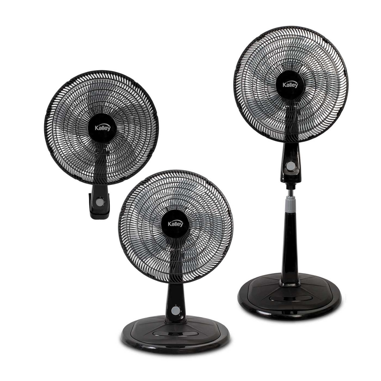 Disfruta el nuevo ventilador Kalley 3 en 1 de 16” el cual cuenta con 66W de potencia gran flujo de aire y poco consumo de energía, puedes usarlo como un ventilador de mesa, pared o pedestal. Cuenta con 3 velocidades (baja, media y alta) que te permiten controlar el flujo de aire deseado. Tiene función giratoria de 80° para refrescar una mayor área, distribuyendo el aire de manera uniforme independientemente de su dirección. Su base es estable y segura proporcionando una mayor estabilidad al momento de la ventilación. Aspas y rejillas en plástico más fáciles de limpiar, livianas y te brindaran mayor durabilidad.