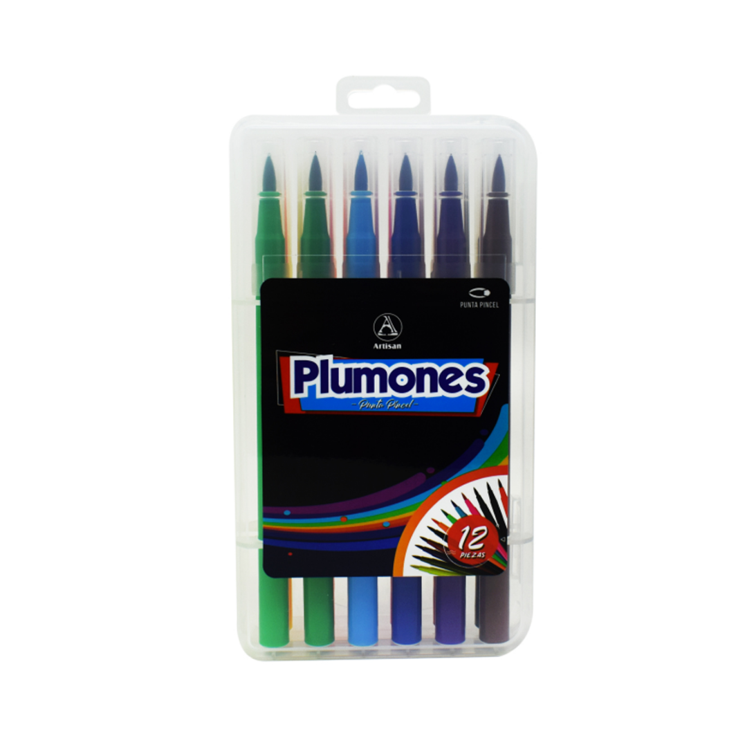 Nueva caja de Plumones Punta pincel Artisan x 12, diferentes gamas de colores para que pintes, dibujes y realices letras con los nuevos plumones, caja plástica trasparente con soporte para cada marcador, Vive un mundo de colores!