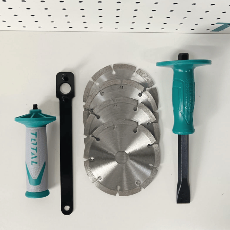Incluye accesorios listos para usar (mango auxiliar, escobilla extra y 4 discos de corte), por lo que podrás comenzar a trabajar de inmediato sin gastos adicionales.