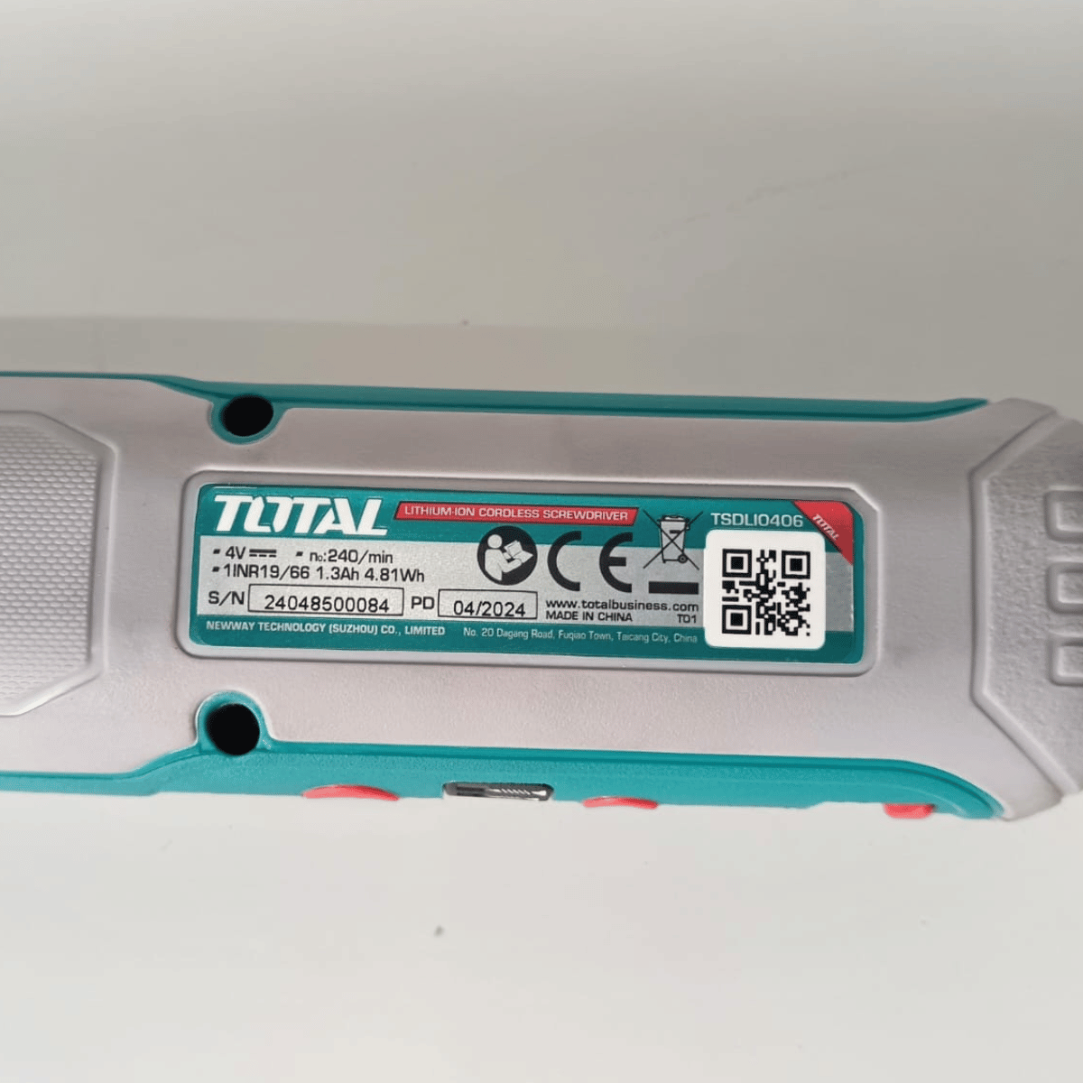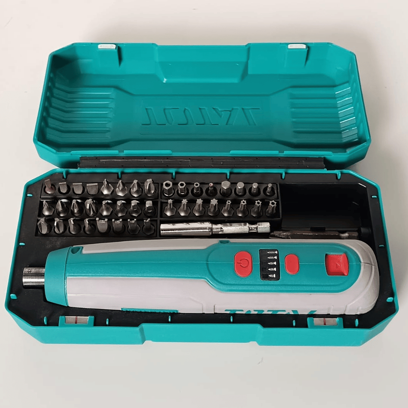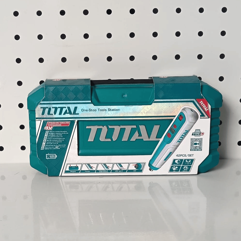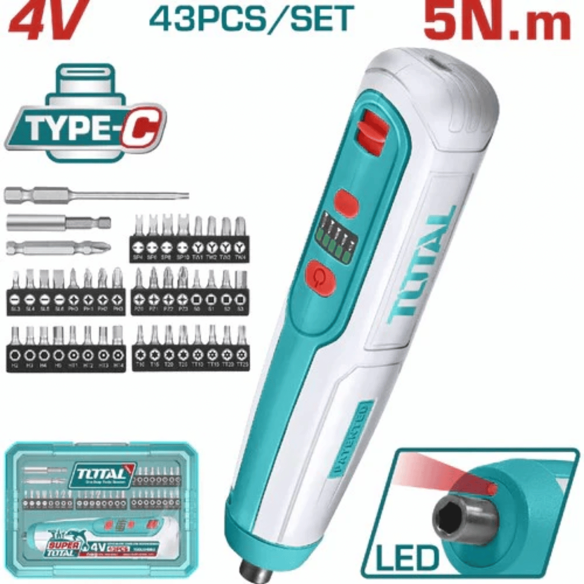 🔧 Atornillador Inalámbrico TOTAL 4V 5Nm con Caja Plástica de 43 Piezas — Potencia compacta, máxima precisión y orden total en tus manos ⚙️🔋