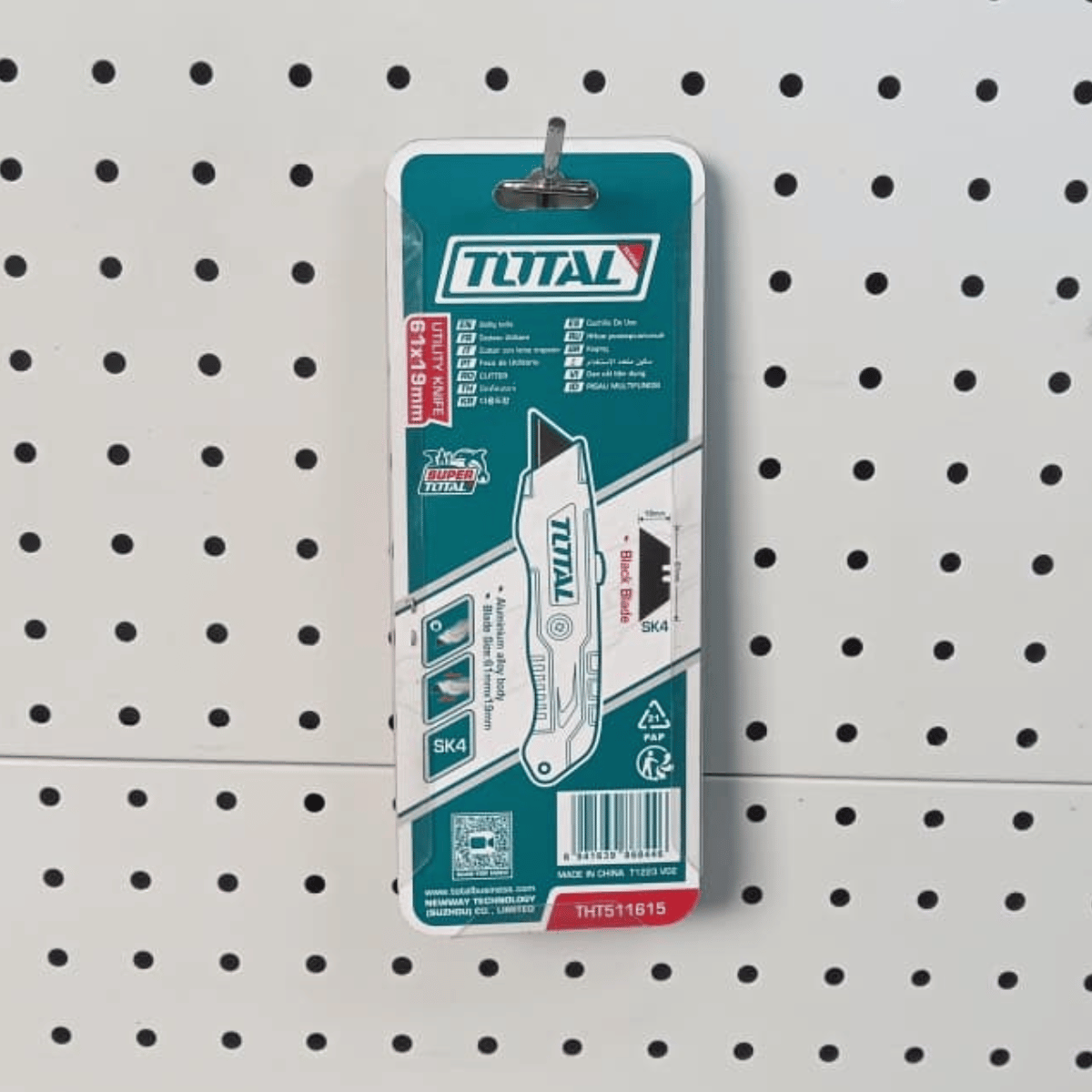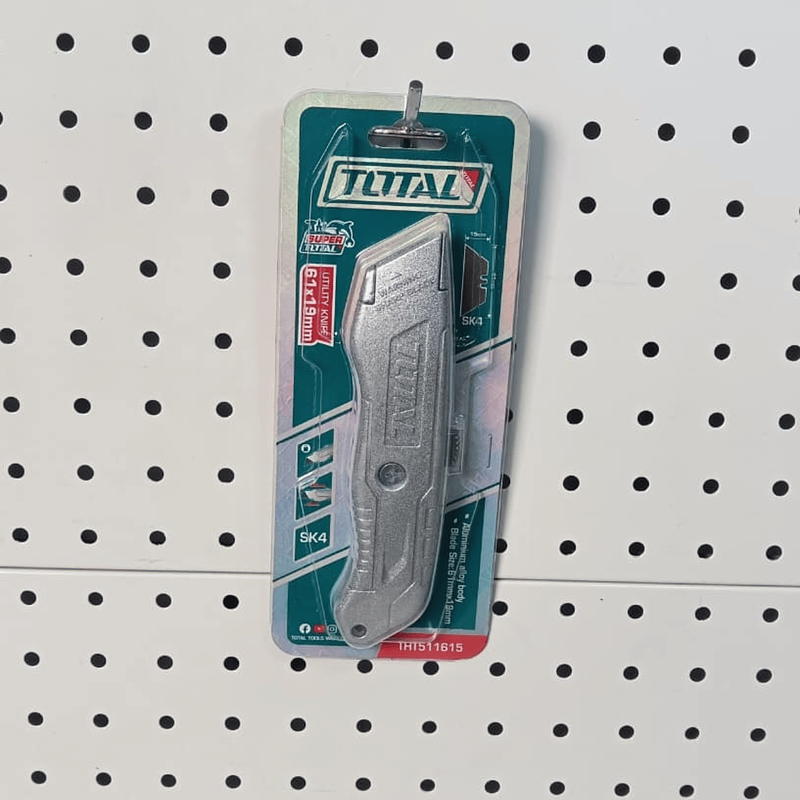Bisturí Metálico Tipo Navaja Total 19x61 mm, diseño robusto y seguro para cortes precisos en materiales exigentes. Ideal para uso profesional y tareas