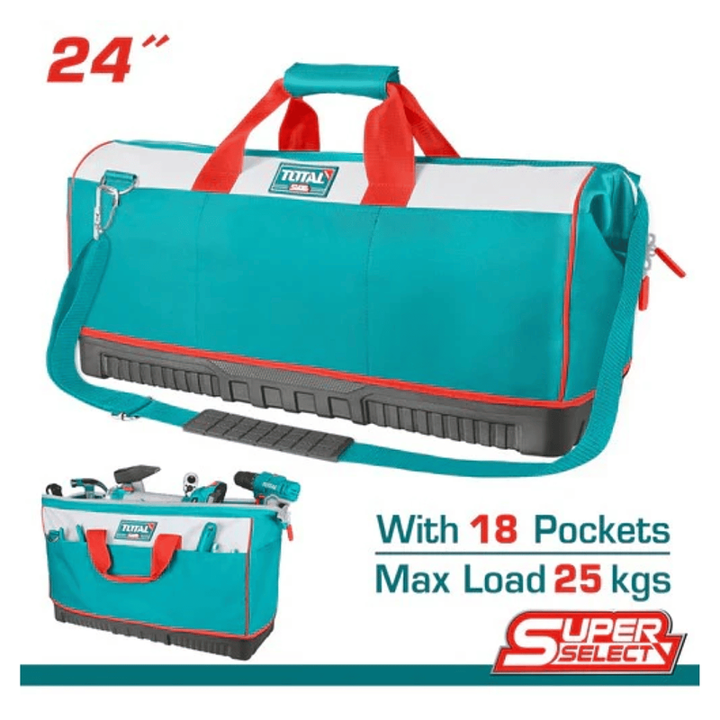 Bolso Para Herramientas 24" TOTAL: resistencia industrial, base rígida y gran capacidad. Transporte seguro, organizado y eficiente para profesionales.