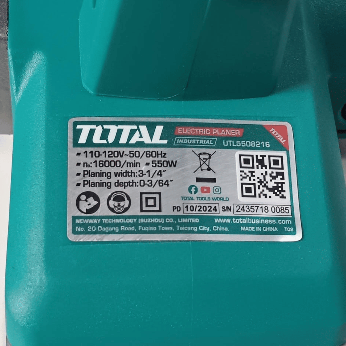 🪵 Cepillo Eléctrico TOTAL 550W 120V: el aliado perfecto para acabados de madera finos y precisos.