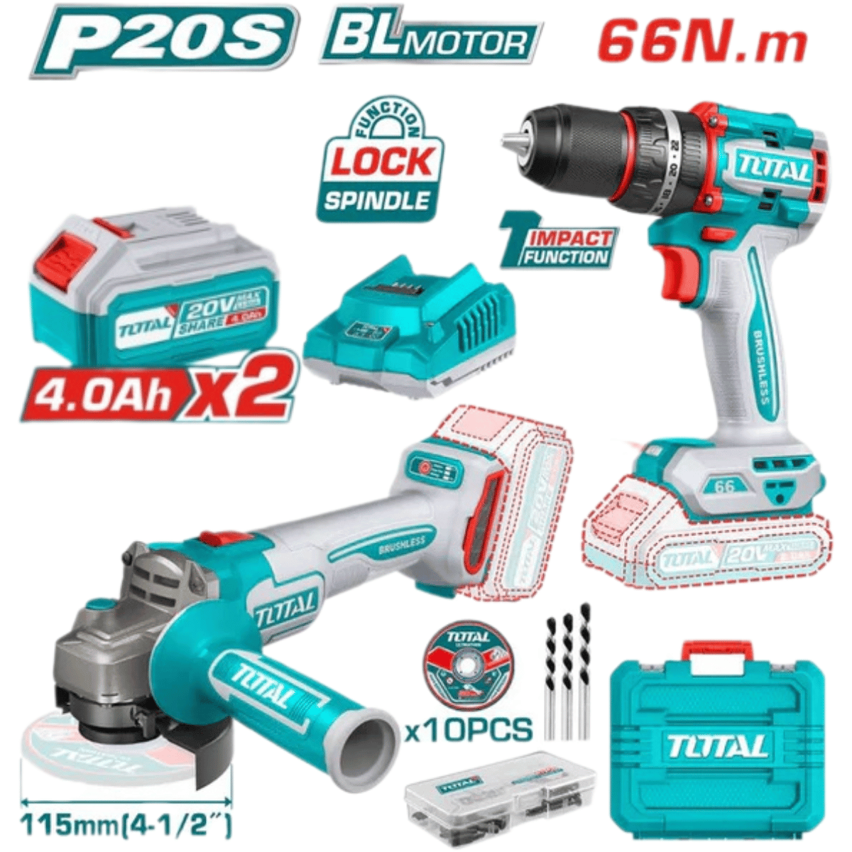 Si buscas potencia, precisión y durabilidad, este Combo TOTAL 2 en 1 es la elección perfecta tanto para profesionales como para aficionados exigentes. Diseñado con tecnología P20S BL Motor, ofrece mayor eficiencia, rendimiento y vida útil.