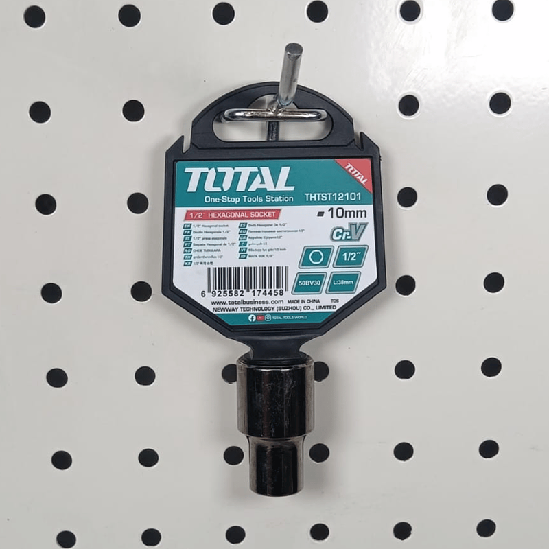 La Copa Hexagonal de 10mm Total, con espiga de 1/2”, está fabricada en acero de alta resistencia y cuenta con un acabado niquelado negro que protege eficazmente contra la oxidación, el desgaste y la corrosión, garantizando una mayor durabilidad incluso en condiciones de uso intenso.