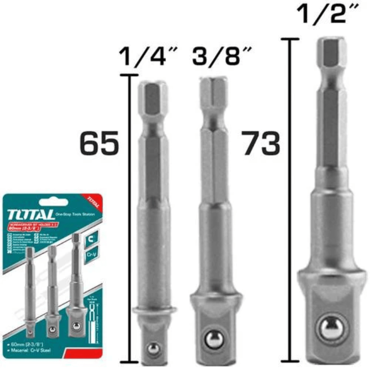 Juego Total 3PZS de adaptadores 1/4"-3/8"-1/2": máxima compatibilidad, resistencia y versatilidad profesional para talleres, mecánica y bricolaje