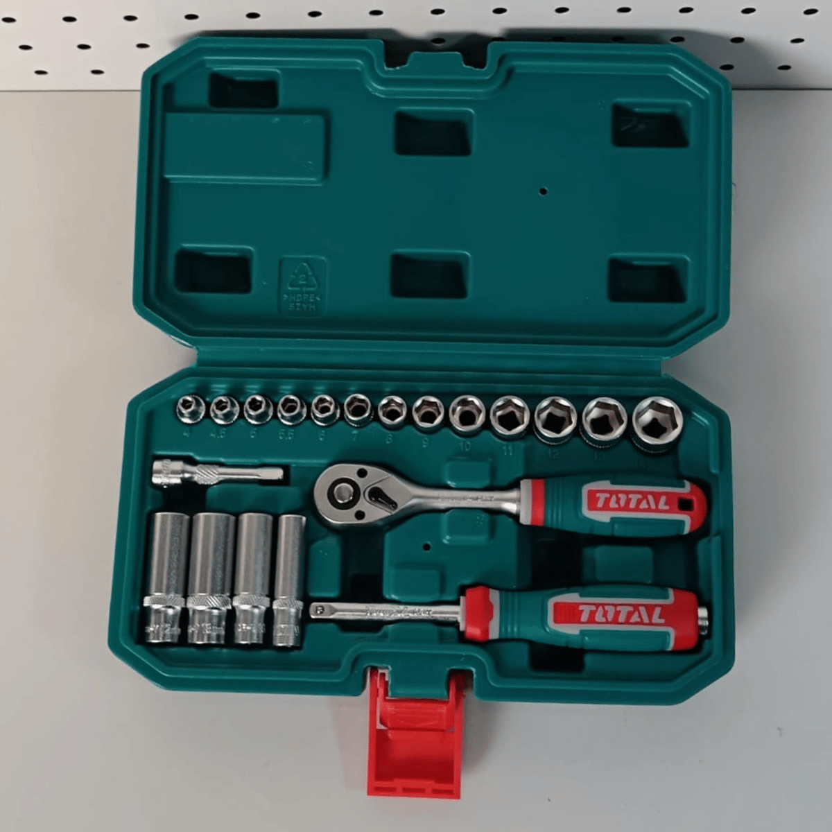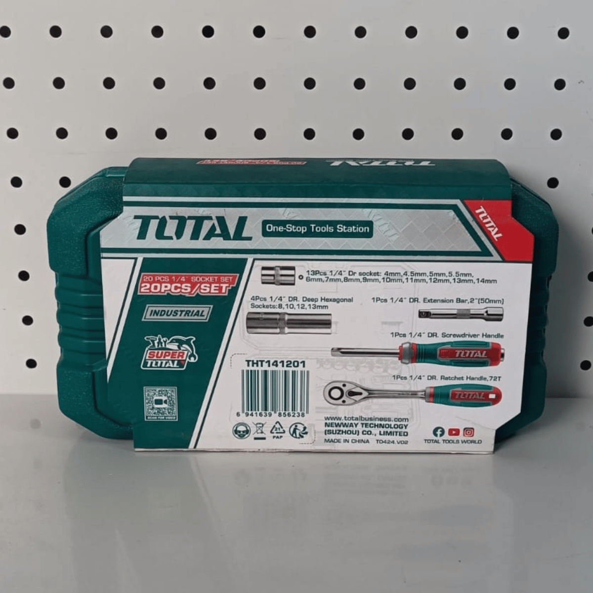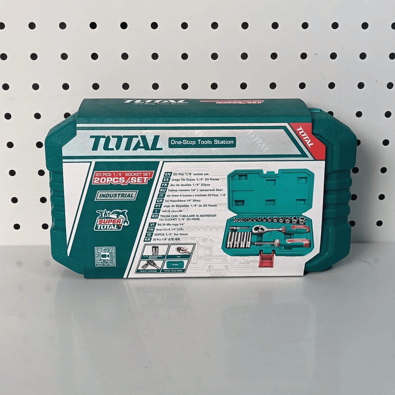 Con el Juego de Copas y Ratchet 1/4" Super Select TOTAL – 20 Piezas, tendrás herramientas resistentes, versátiles y precisas, diseñadas para ofrecer eficiencia, comodidad y resultados profesionales en cada proyecto, ya sea en talleres industriales o tareas domésticas.