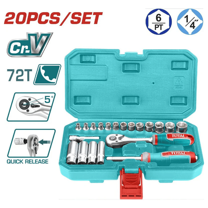 🛠️ Juego de Copas y Ratchet 1/4" Super Select TOTAL – 20 Piezas – Precisión y calidad en un set compacto ⚙️